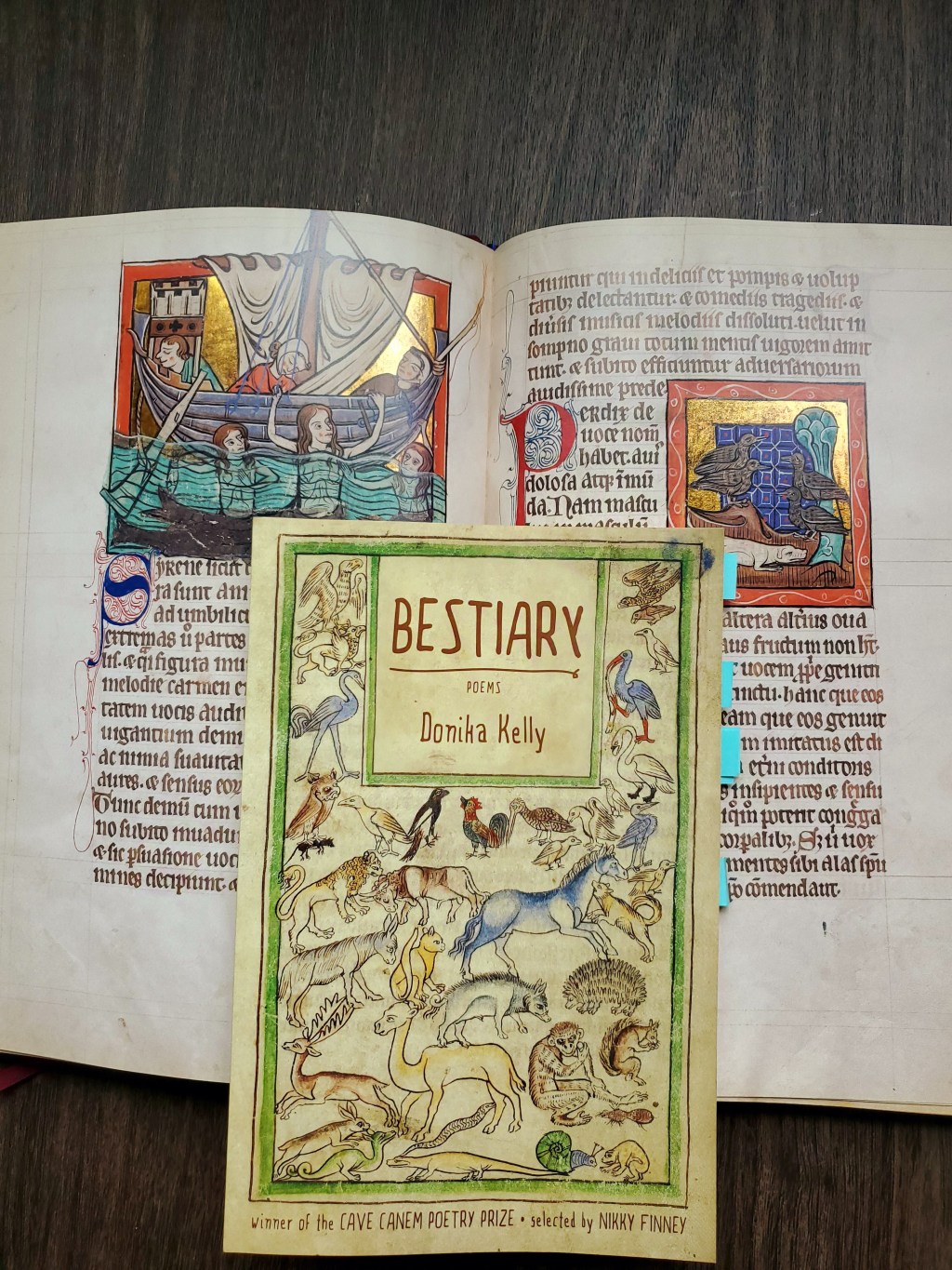 Donika Kelly’s poetry collection, Bestiary, presents readers with a catalogue of animals, beasts, and other mythological creatures, such as the chimera, whale, centaur, and siren. When I first encountered this collection, I knew nothing about Kelly, her work, or her proximity to me (we are on the same campus!) and though I do enjoy reading and writing poetry, it was the cover art alone that intrigued me: a folio from the thirteenth-century, Northumberland Bestiary depicting Adam naming the animals. Except in this version, Adam is not pictured. After looking at the digitized manuscript on the Getty Museum’s website, I realized that the title of the collection and name of the author supplants his figure. Fittingly, it is Kelly who names and invokes these creatures, not Adam. Even more interesting, as I read the collection, I realized that Kelly was not only cataloging these mythological beasts but cataloging, evoking, and working through trauma.