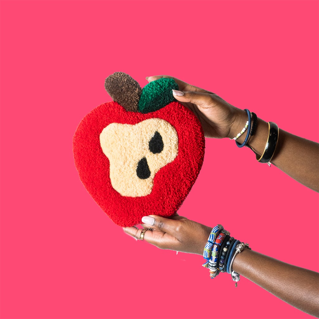 Thelma is also a part-time fiber artist. Through a combination of punch needle embroidery, rug tufting, and locally-sourced secondhand yarn, she makes 3-D textile art inspired by ordinary objects – food, frogs, flowers, birds. Her work has supported fundraising for the Iowa City Public Library (Arts and Crafts Bazaar 2023) and The Englert Theater (Mission Creek Festival 2024 & 2025 Fundraiser), and the Palestine Children’s Relief Fund.